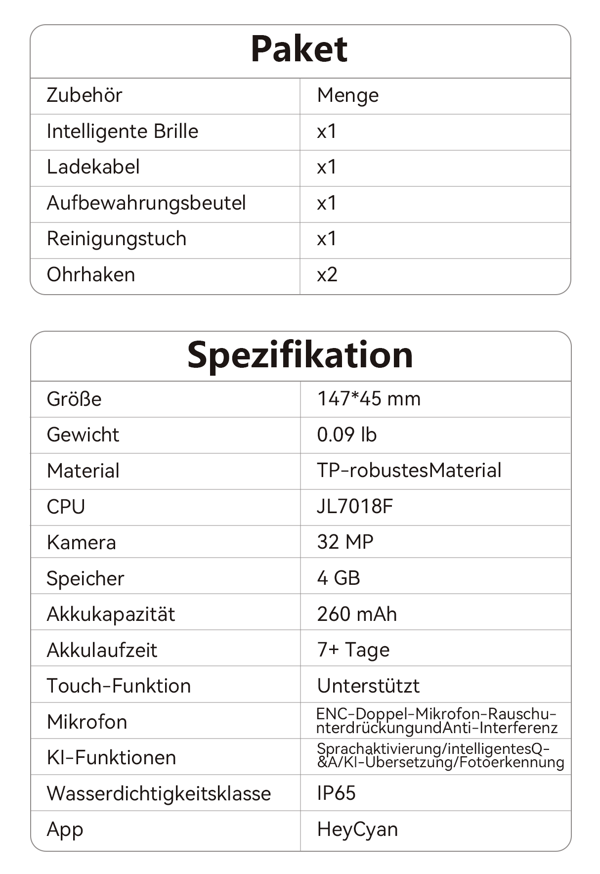 - Langanhaltende Power – Der stromsparende Chip sorgt für eine verlängerte Akkulaufzeit, sodass Sie die Brille den ganzen Tag nutzen können.