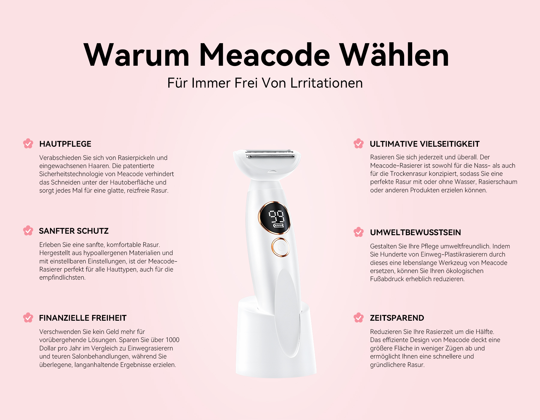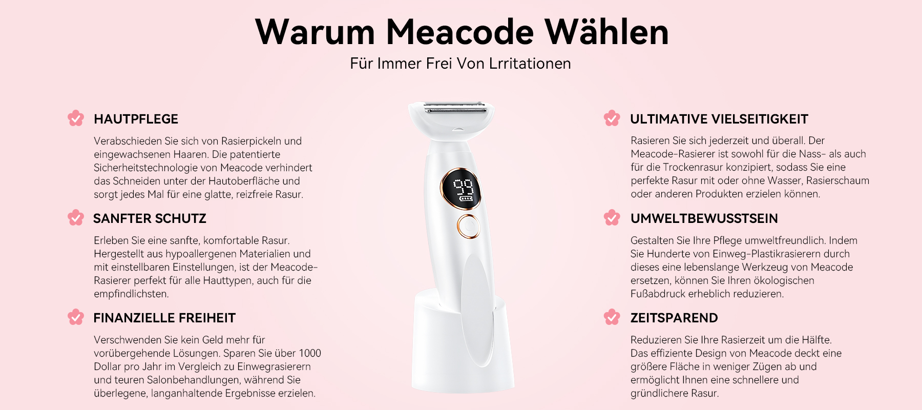 Der Meacode Bikini-Trimmer für Frauen ist dein täglicher Pflege-Revitalisierer und Begleiter für selbstbewusste Schönheit, der dir professionelles Rasieren direkt nach Hause bringt.