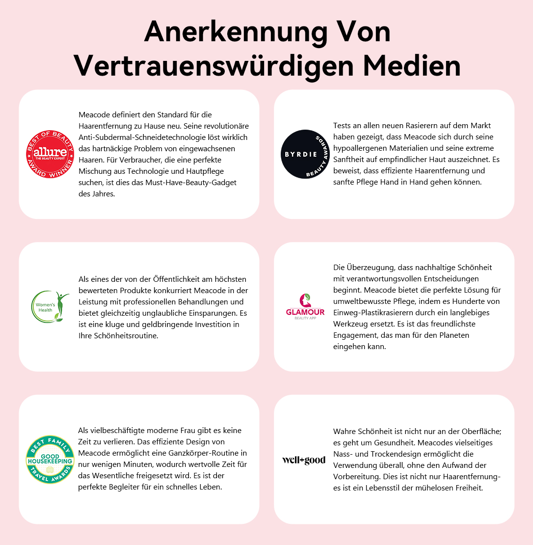 Meacode glaubt, dass Technologie stärken und nicht komplizieren sollte. Deshalb wurde jedes Merkmal – patentierte Anti-Schneide-Technologie, All-in-One-Vielseitigkeit, ergonomisches Design – für dich entwickelt. Er ist mehr als nur ein Trimmer; er ist dein Vertrauensstifter, der dir hilft, deine Freiheit zurückzugewinnen und dich für alles bereit zu fühlen.