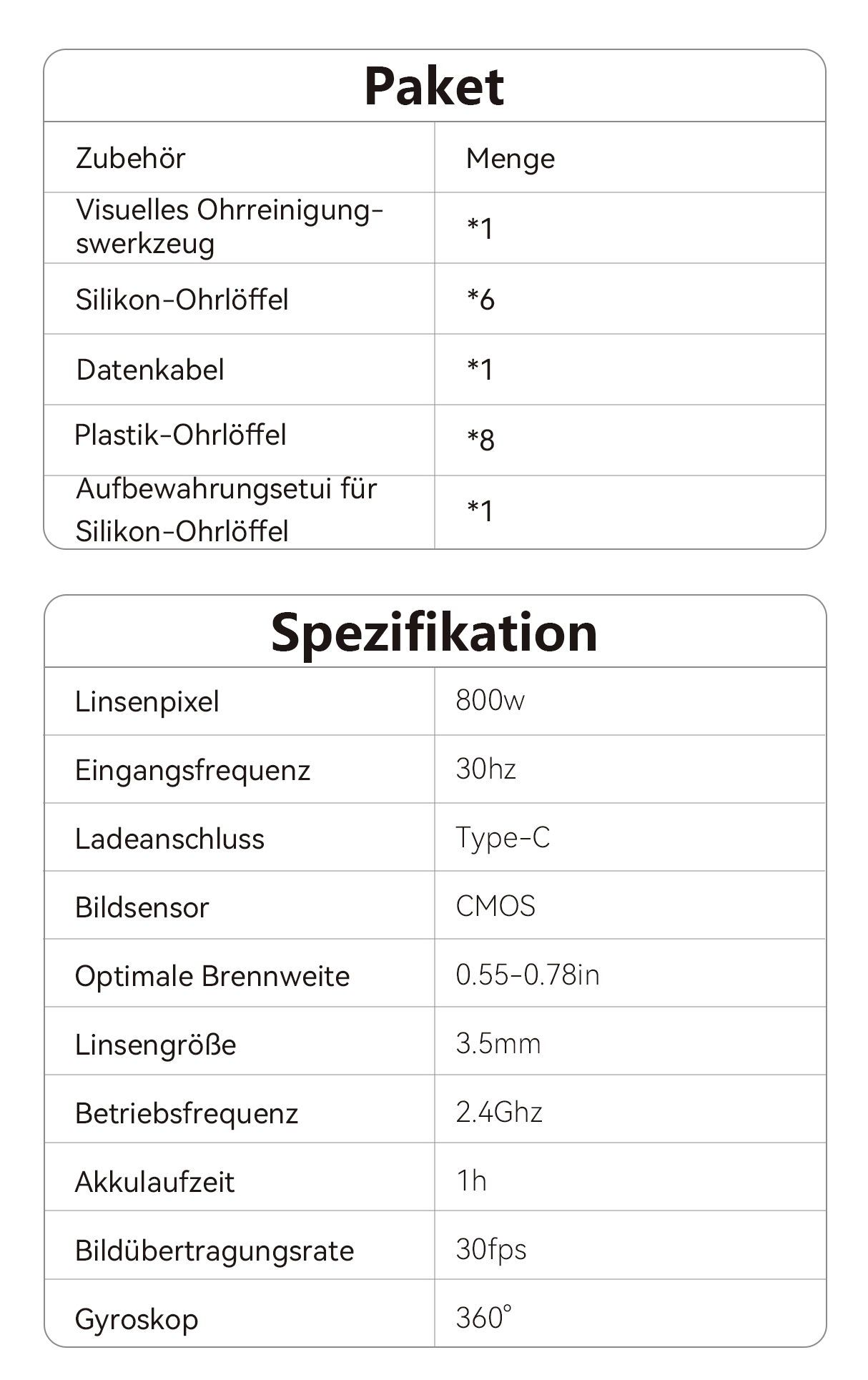 Das Bild ist unglaublich klar. Mit seinem 8MP hochpräzisen Endoskop bietet es eine detaillierte und naturgetreue Ansicht des Gehörgangs. Die Akkulaufzeit ist ebenfalls ausgezeichnet und bietet etwa 60 Minuten kontinuierliche Nutzung, was mehr als genug für mehrere Reinigungen ist.