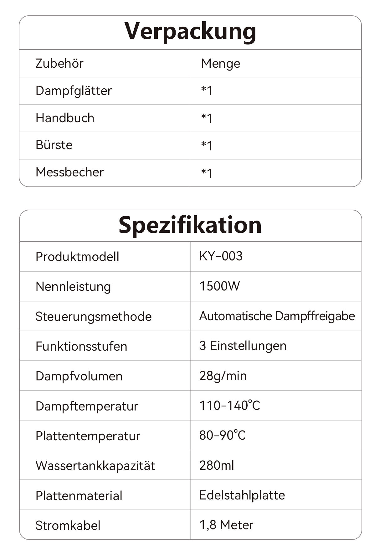 - 1500 W starker Dampf: Dringt tief in Stoffe ein, um selbst die hartnäckigsten Falten mühelos zu glätten.